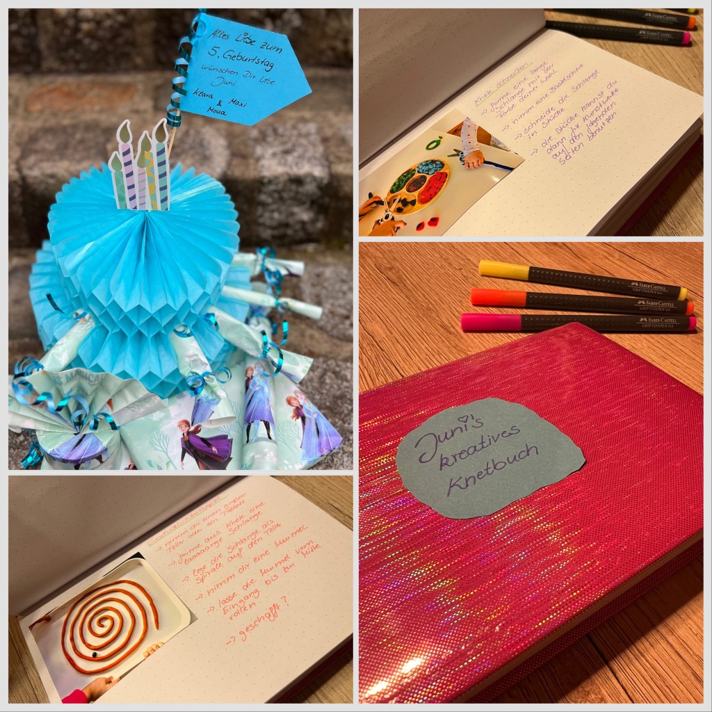 Ein individuelles Buch mit verschiedenen Ideen zum basteln mit Knete sowie passendes Zubehör zur Umsetzung. Verpackt passend zum Thema der Party.